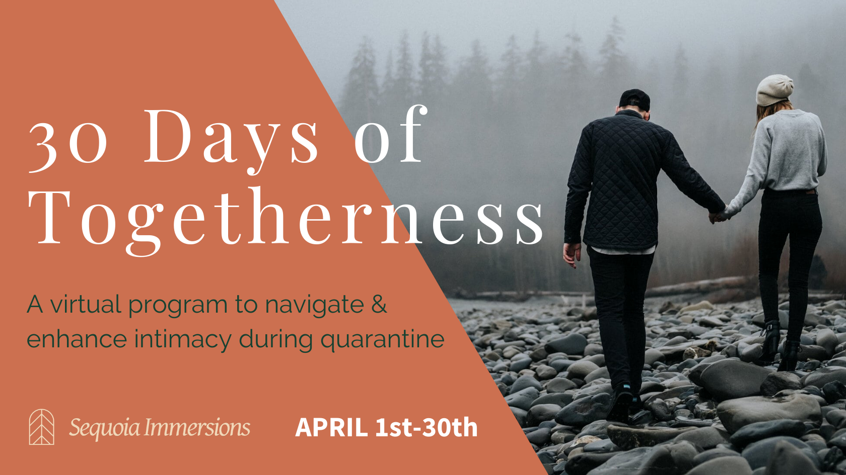 Over the course of 30 days, we will navigate the challenges presented during this unique time in history, explore ways to enhance a sense of individuality and togetherness as a couple, and take a deep look into your dreams, goals, and next chapter as individuals and as a couple.